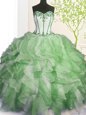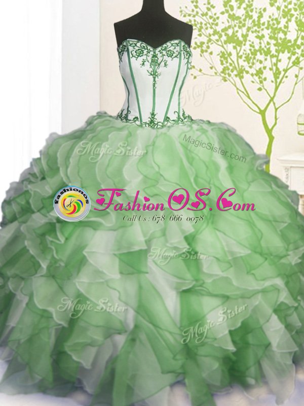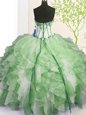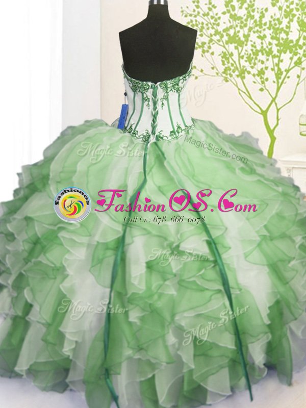 Green Sleeveless Organza Lace Up Quince Ball Gowns for Military Ball and Sweet 16 and Quinceanera