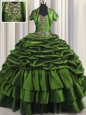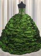 Home >  Quinceanera Dresses >  Perfect Quinceanera Dresses > Green Sleeveless With Train Beading and Appliques and Pick Ups Lace Up Sweet 16 Dresses