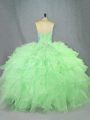 Green Sweetheart Lace Up Beading and Ruffles Quinceanera Gown Sleeveless