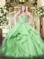 Green Tulle Lace Up Sweetheart Sleeveless Floor Length Quince Ball Gowns Beading and Ruffles