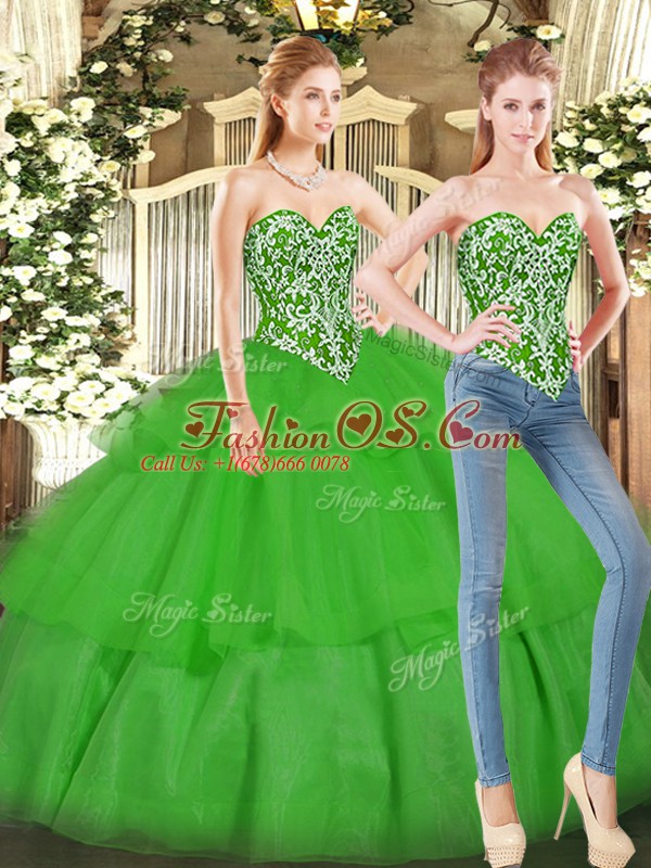 Home >  Quinceanera Dresses >  Detachable Quinceanera Skirts > Green Tulle Lace Up Sweetheart Sleeveless Floor Length Quinceanera Dress Beading and Ruffled Layers