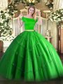 Green Zipper Off The Shoulder Appliques 15 Quinceanera Dress Tulle Short Sleeves