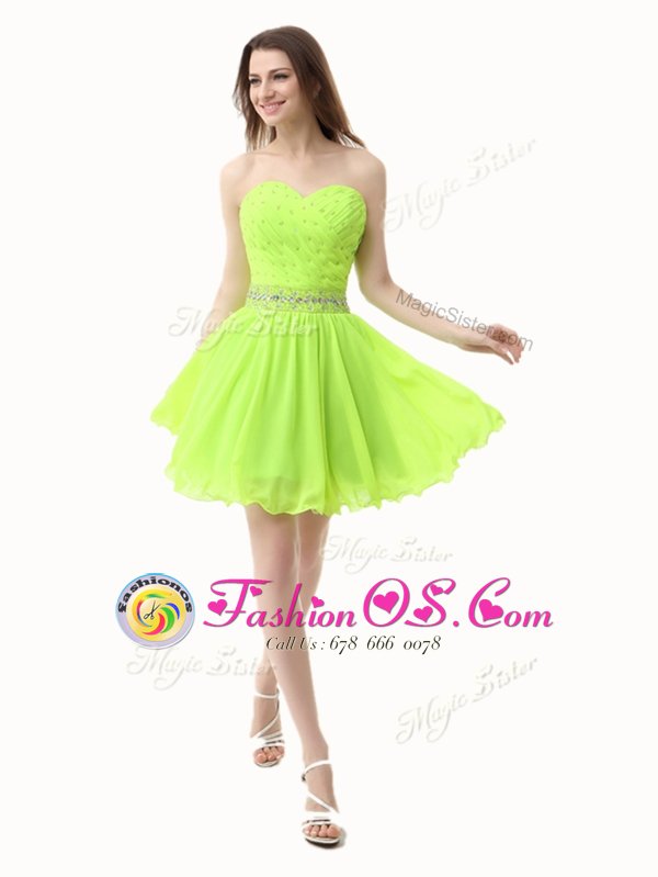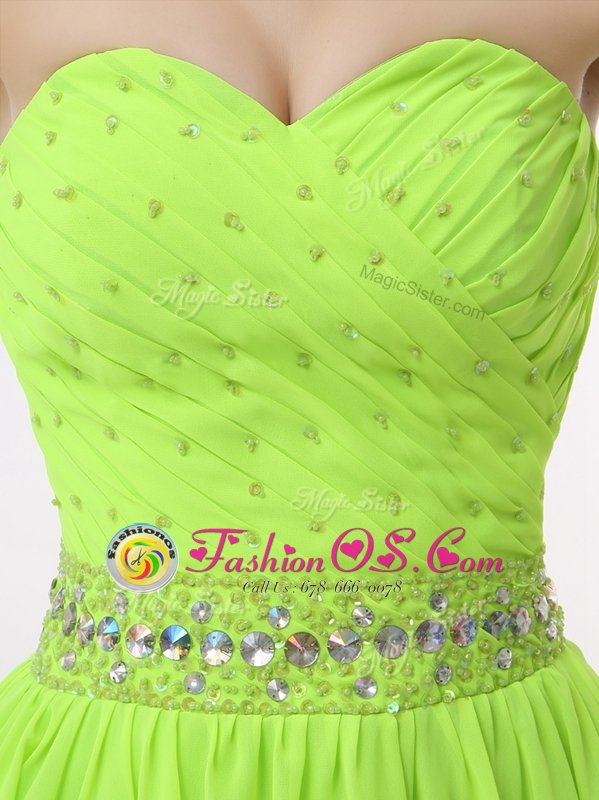 Green Zipper Sweetheart Beading Prom Evening Gown Organza Sleeveless