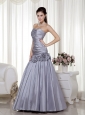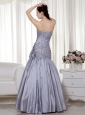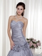 Home >  Prom Dresses >  Best Prom Dresses > Grey A-line Sweetheart Floor-length Taffeta Hand Made Flowers Prom Dress