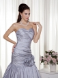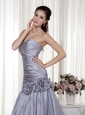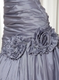 Grey A-line Sweetheart Floor-length Taffeta Hand Made Flowers Prom Dress