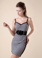 Grey and Black Spaghetti Straps Belt Mini-length Cocktail Dress For Custom Made
