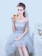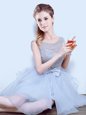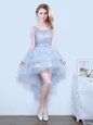 Grey Bridesmaid Dress Prom and Party and Wedding Party and For with Lace and Ruffles and Ruffled Layers and Bowknot Scoop Sleeveless Lace Up