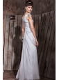 Home >  Evening Dresses > Grey Column Bateau Floor-length Chiffon Beading Prom Dress