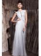 Grey Column Bateau Floor-length Chiffon Beading Prom Dress