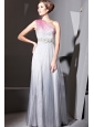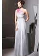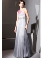 Grey Column One Shoulder Floor-length Tulle Beading Prom Dress