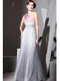 Home >  Evening Dresses > Grey Column One Shoulder Floor-length Tulle Beading Prom Dress