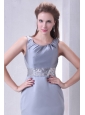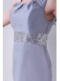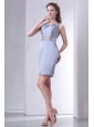Grey Column Scoop Mini-length Short Prom Dress with Beading
