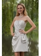 Grey Column / Sheath Strapless Mini-length Satin Ruch Bridesmaid Dress