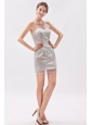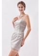 Home >  Prom Dresses >  Short Prom Dresses > Grey Column / Sheath Sweetheart Prom Dress Organza Sequins Mini-length