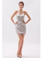 Grey Column / Sheath Sweetheart Prom Dress Organza Sequins Mini-length