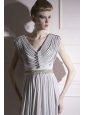 Grey Column / Sheath V-neck Floor-length Chiffon Beading Prom / Evening Dress