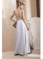 Home >  Prom Dresses >  Discount Prom Dresses > Grey Empire High-neck Floor-length Chiffon Appliques Prom / Celebrity Dress