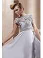 Grey Empire High-neck Floor-length Chiffon Appliques Prom / Celebrity Dress