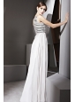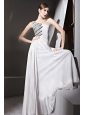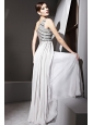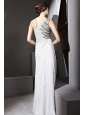 Grey Empire One Shoulder Floor-length Chiffon Beading Prom Dress