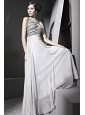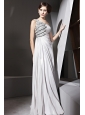 Home >  Evening Dresses > Grey Empire One Shoulder Floor-length Chiffon Beading Prom Dress