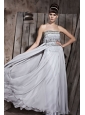 Grey Empire Strapless Floor-length Chiffon Beading Prom Dress