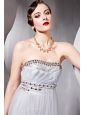 Home >  Evening Dresses > Grey Empire Strapless Floor-length Tulle Sequins and Rhinestone Prom / Evening Dress