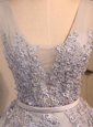 Home >  Prom Dresses >  Perfect Prom Dresses > Grey Lace Up Dress for Prom Beading and Appliques Sleeveless Mini Length