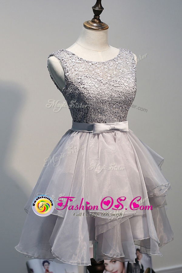 Grey Lace Up Scoop Beading Prom Dress Organza and Lace Sleeveless