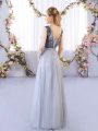Grey Lace Up Vestidos de Damas Appliques Sleeveless Floor Length