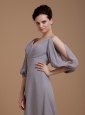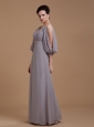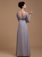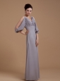 Grey Mother Of The Bride Dress With V-neck 3/4 Length Sleeves Floor-length
