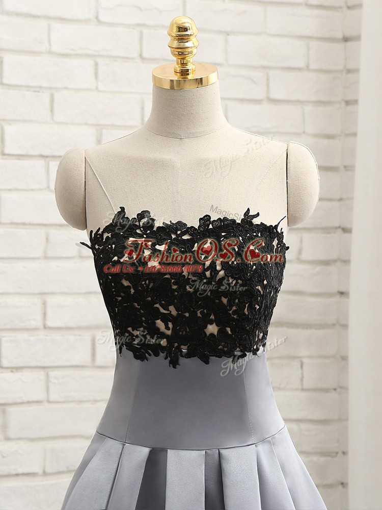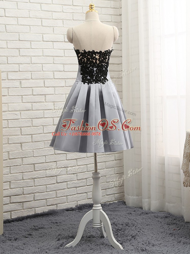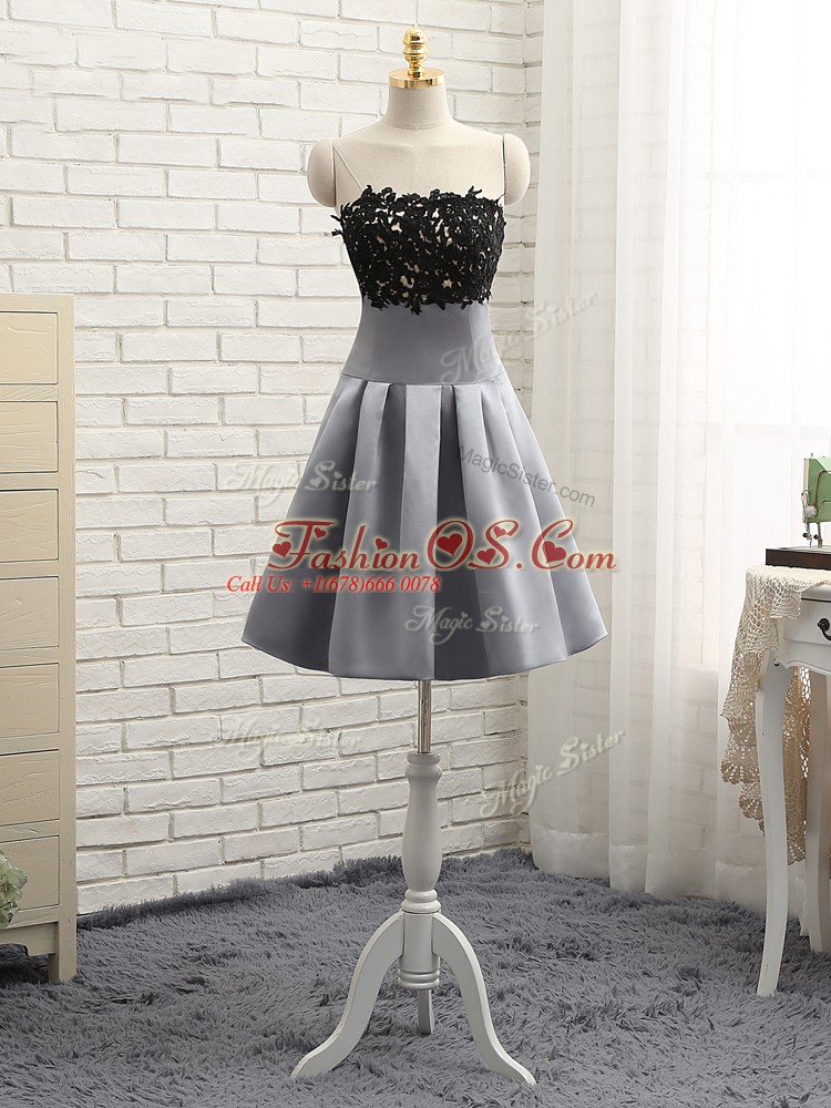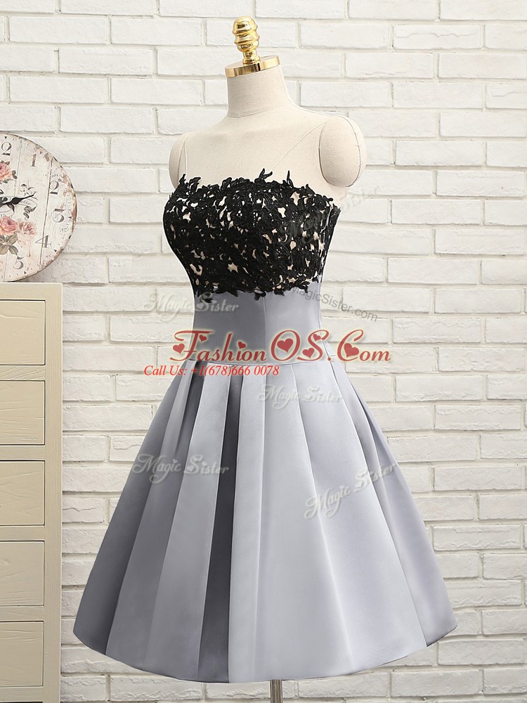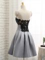Grey Side Zipper Prom Dresses Lace and Appliques Sleeveless Mini Length