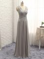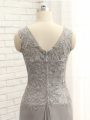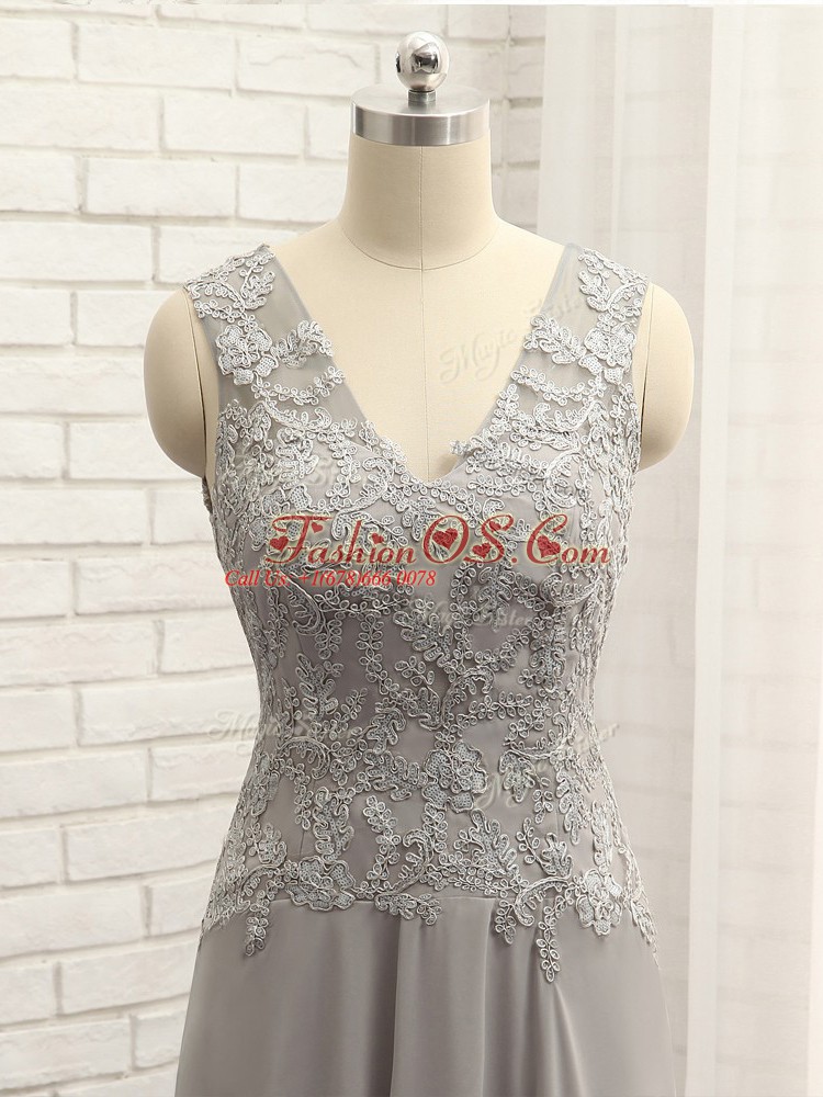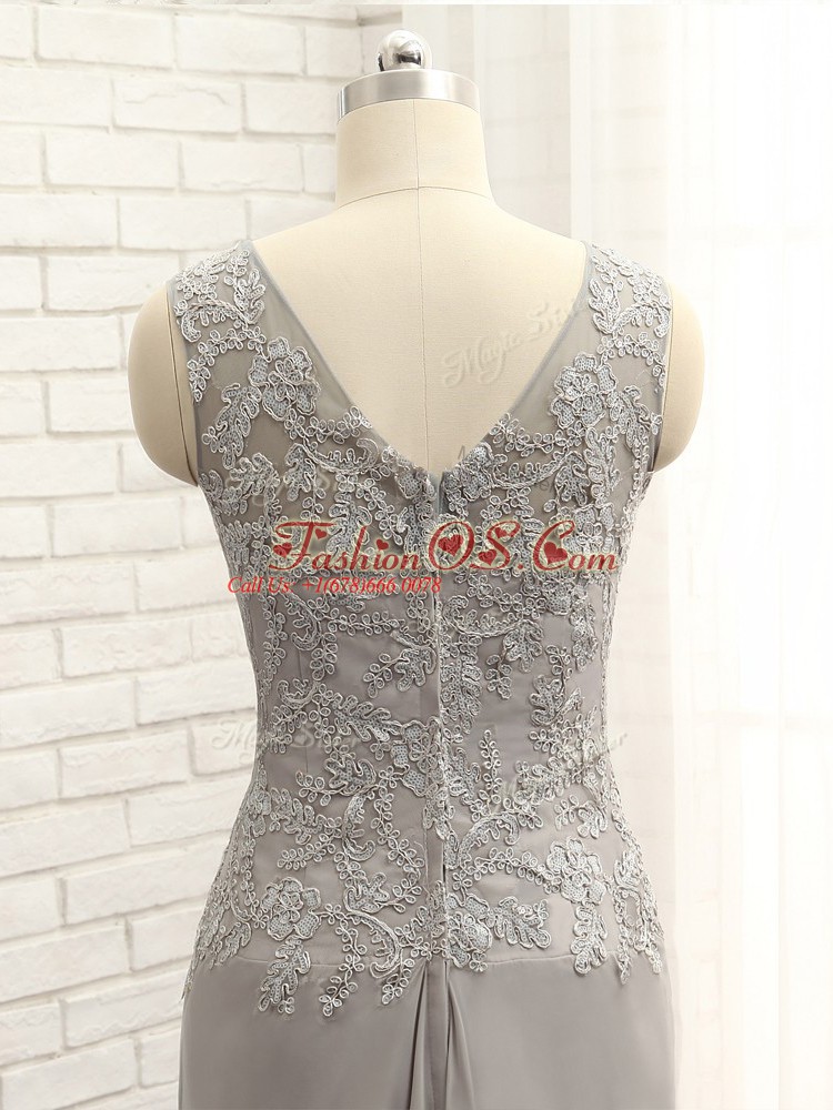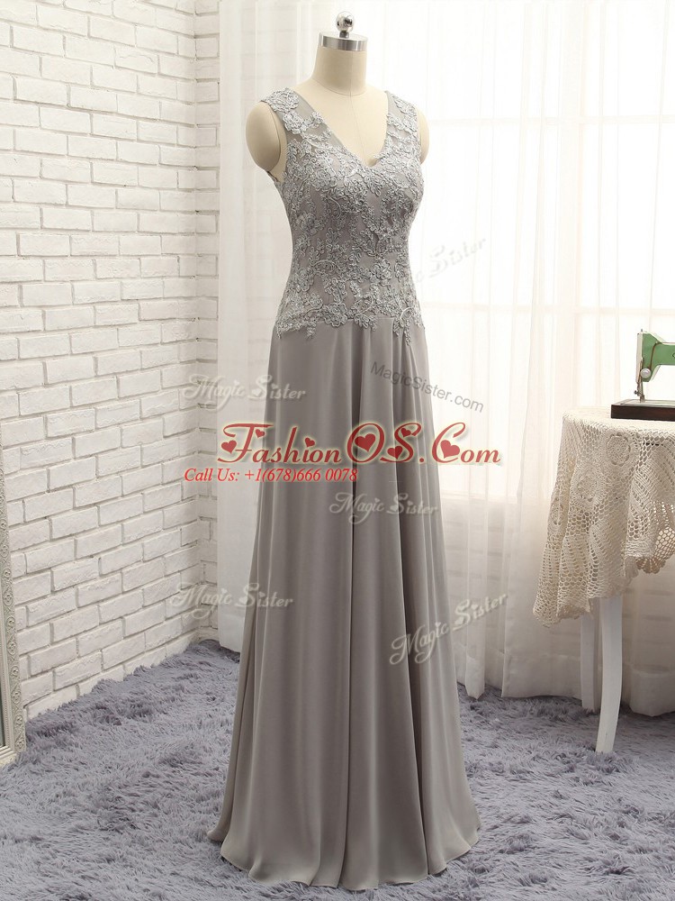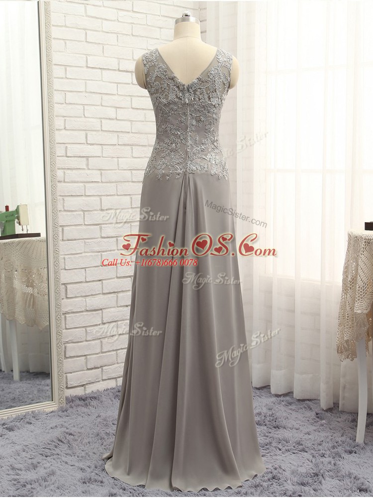 Grey Sleeveless Lace and Appliques Floor Length Mother Of The Bride Dress
