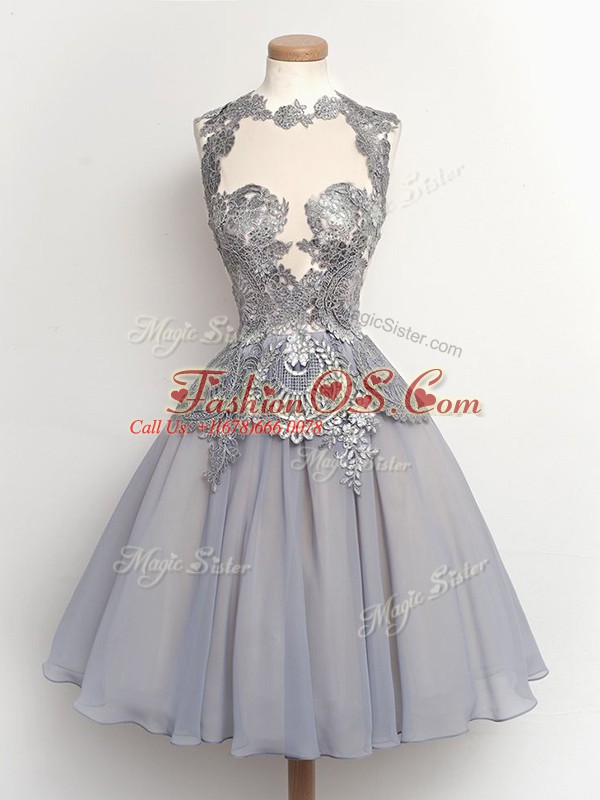 Grey Sleeveless Lace Knee Length Quinceanera Dama Dress