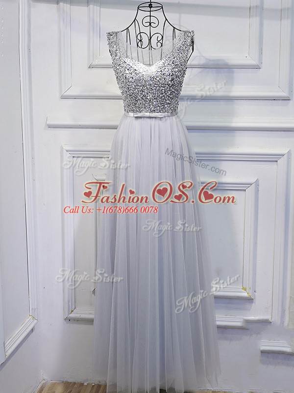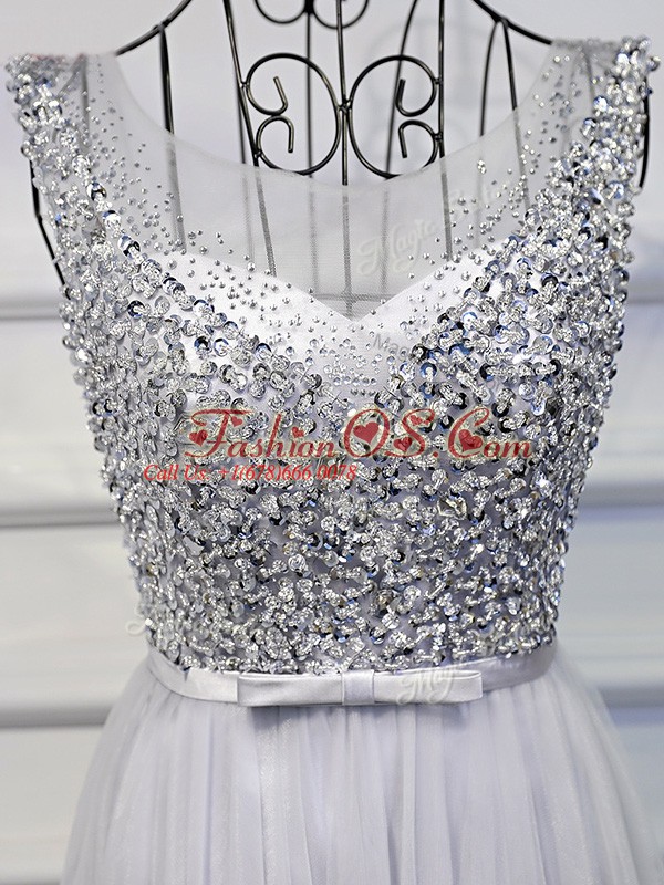 Home >  Prom Dresses >  Prom Dresses On Sale > Grey Sleeveless Tulle Lace Up Prom Dress for Prom and Party and Sweet 16