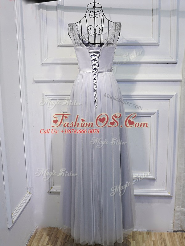 Grey Sleeveless Tulle Lace Up Prom Dress for Prom and Party and Sweet 16