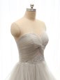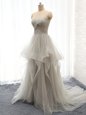 Grey Sweetheart Neckline Beading and Ruffles Prom Dresses Sleeveless Lace Up