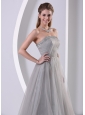 Home >  Prom Dresses >  Plus Size Prom Dresses > Grey Tulle A-line Strapless Beaded Simple Plus Size Prom Dress With Sweep Train