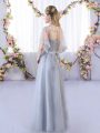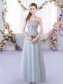 Grey Tulle Lace Up Wedding Party Dress Sleeveless Floor Length Lace