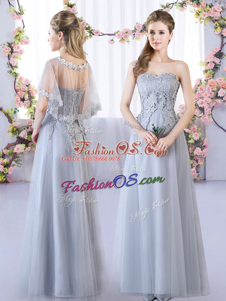 Home >  Bridesmaid Dresses >  Bridesmaid Dresses 2019 > Grey Tulle Lace Up Wedding Party Dress Sleeveless Floor Length Lace