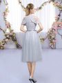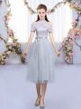Grey Zipper High-neck Lace and Belt Bridesmaids Dress Tulle Sleeveless