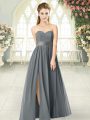 Grey Zipper Sweetheart Belt Prom Gown Chiffon Sleeveless