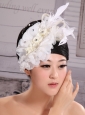 Hair Accessories For Brides Bud Silk Yarn Feather With Pearls and Beading Embellishment