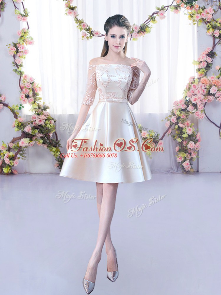 Half Sleeves Mini Length Lace and Belt Lace Up Quinceanera Court of Honor Dress with Champagne
