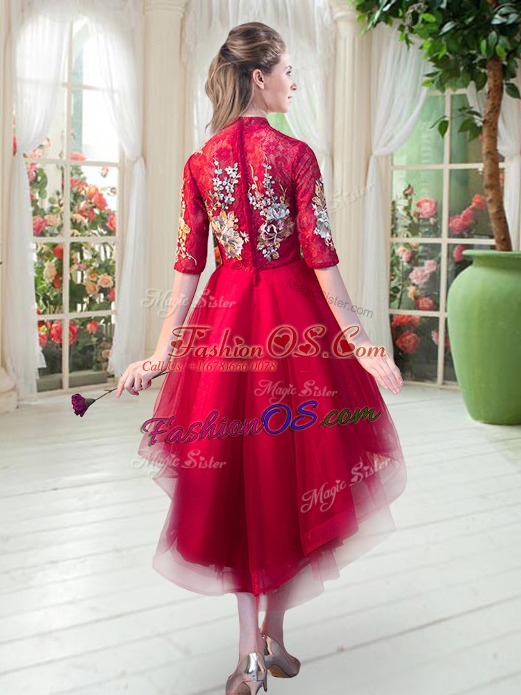 Half Sleeves Tulle High Low Zipper Evening Dress in Royal Blue with Appliques