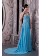 Go for the wow factor in this wonderful prom dress! The top bodice is completed with a modified ruched chiffon while the bottom bodice is adorned with floral beadings. The spotlight of the dress is the neckline, it has a ruching halter top forms a V-neck and another beaded offer the shoulder straps continue to the back to from a cross line, which let you show off your smooth skin. The glamorous floor length skirt adds an elegant touch to this magnificent long formal dress for prom. The chapel train in the back will promote your temperament. Zipper up back. You can show off your fun and flirty in this prom dress!