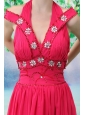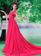 Home >  Prom Dresses >  Popular Prom Dresses > Halter and Off the Shoulder Beading Empire Chiffon Hot Pink Court Train Prom Dress