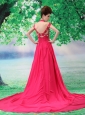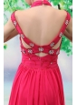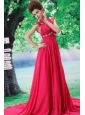 Halter and Off the Shoulder Beading Empire Chiffon Hot Pink Court Train Prom Dress