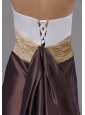 Elegance, classical and style are just a few words that come to mind when you see this stunning dress. Made from a gorgeous three clolr taffeta fabric in a traditional sheath-style, it features two-shoulder-strap bodice with a deep V-neckline. The back of the dress features a lace closure that secures the dress in place attached a drapping taffeta fabric down to floor forming a train. A good choice for any occasion on your calendar.