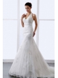 Halter Appliques Tulle Court Train Modern Wedding Dress