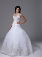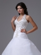 Halter Ball Gown Wedding Dress Embroidery Decorate Bodice Custom Made Brush Train